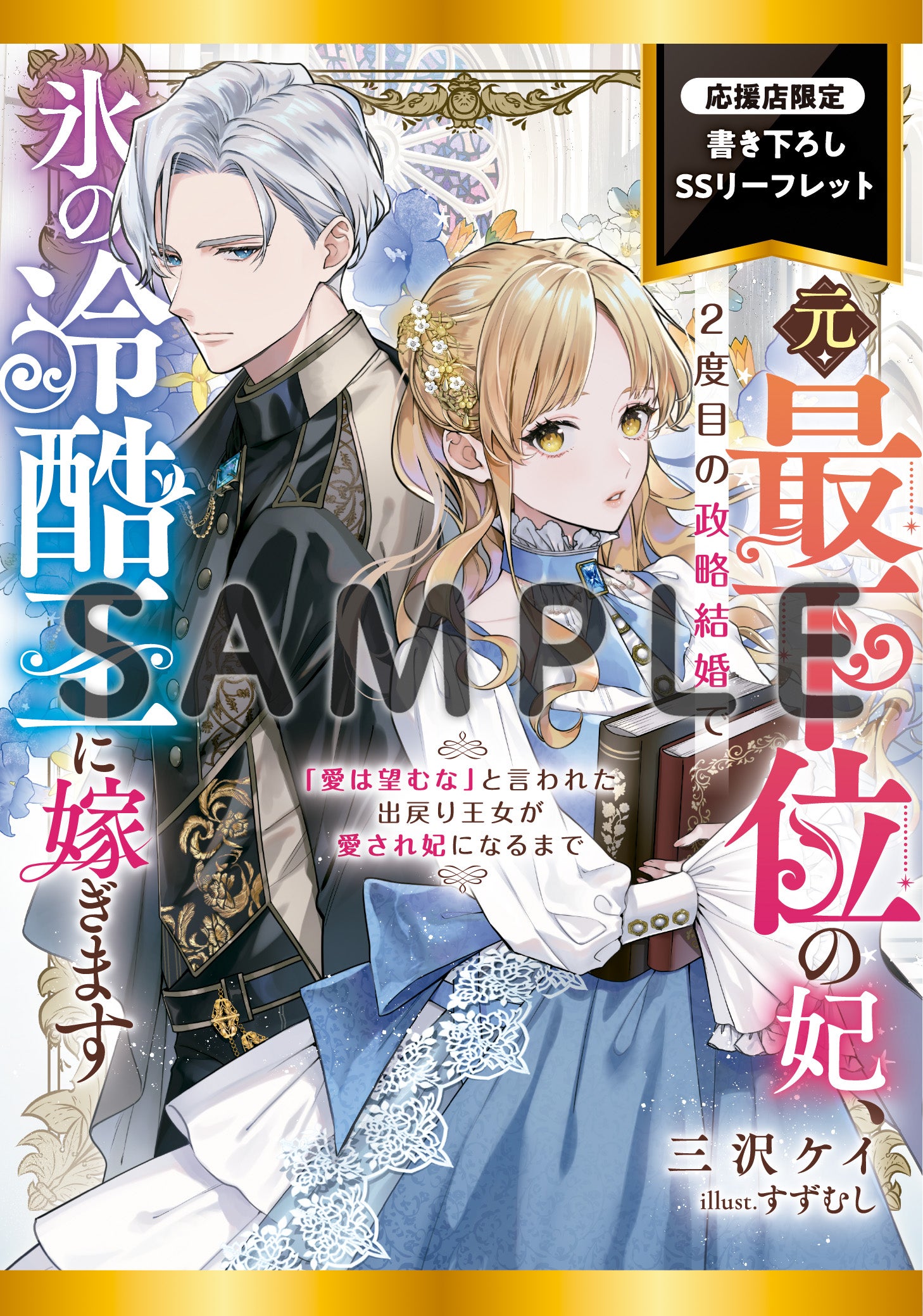 8月10日発売、『元・最下位の妃、2度目の政略結婚で氷の冷酷王に嫁ぎます~「愛は望むな」と言われた出戻り王女が愛され妃になるまで~』の特典情報をご紹介!