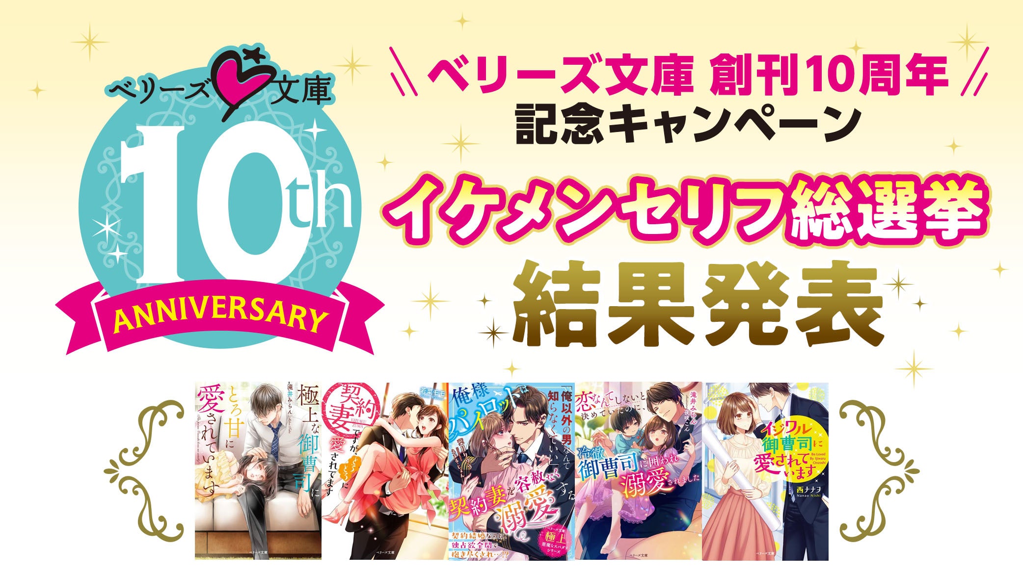 ベリーズ文庫創刊10周年!アニバーサリーキャンペーン「イケメンセリフ総選挙」の投票結果を発表!