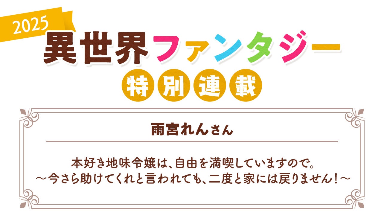 異世界ファンタジー特別連載2025年の第3弾は雨宮れんさんが登場!