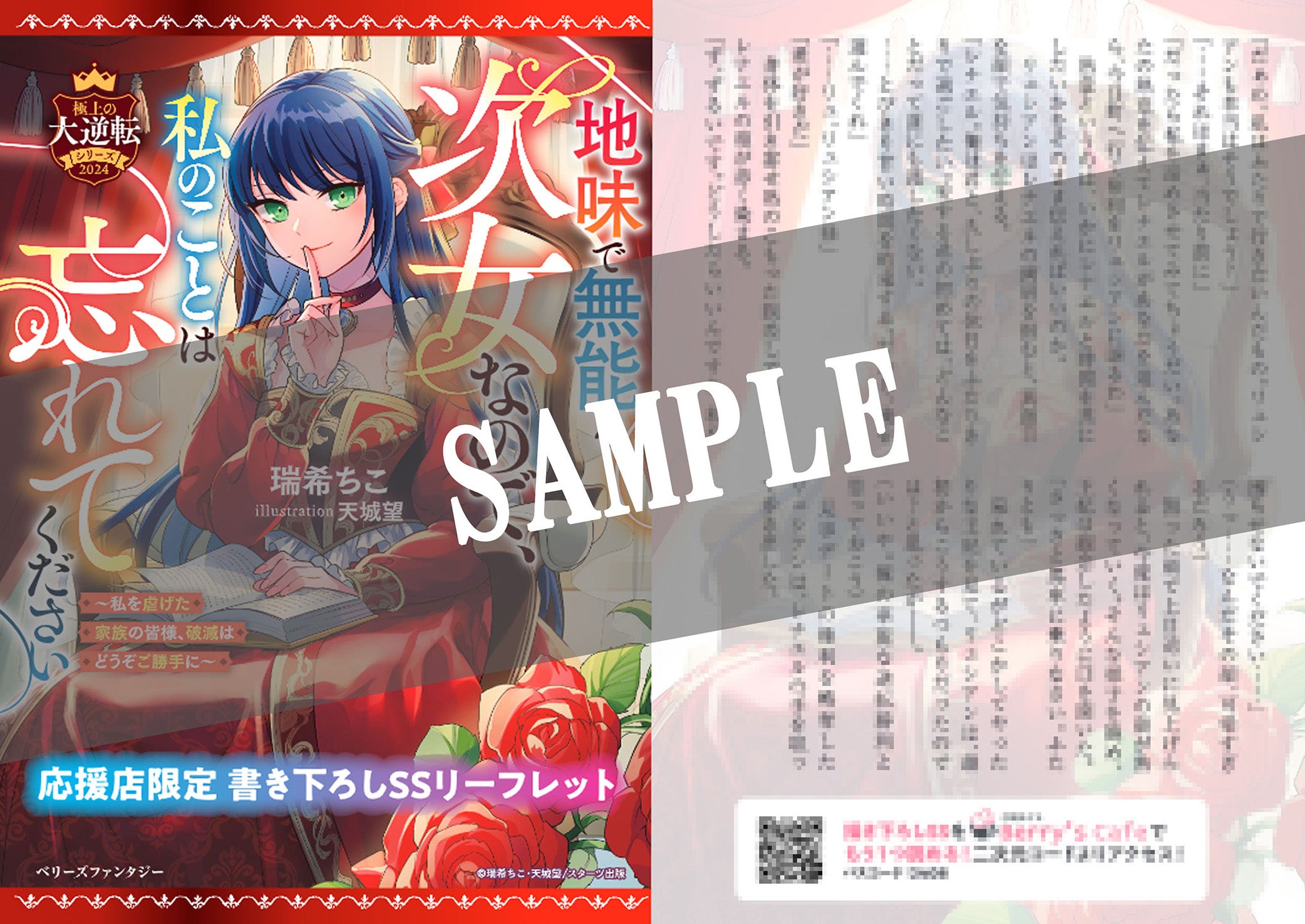 8月5日発売の『地味で無能な次女なので、私のことは忘れてください~私を虐げた家族の皆様、破滅はどうぞご勝手に~【極上の大逆転シリーズ2024】』特典情報をご紹介!