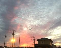 日没前後の夕焼け空が、最近とても綺麗です。日中はひつじ雲もモコモコたくさん浮かんでいました。秋だなー。