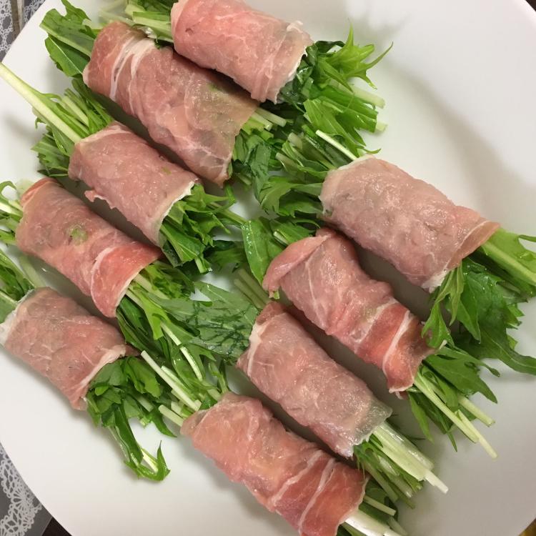 食材は、水菜79円+豚肉1パック196円で計270円。