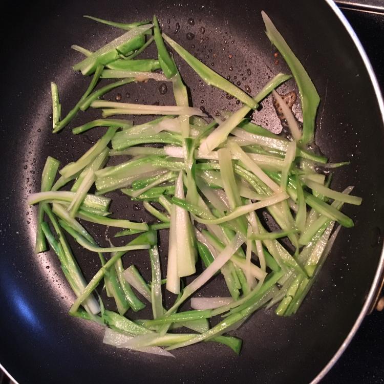 油は少量で、小さじ二分の一のシャンタン(なければ鶏ガラスープの素)を入れて炒めたら、卵でとじます。