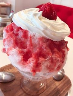 そんで、締めパフェならぬ締めかき氷をしてきました。こちらは氷がふわふわ。苺ソースは天然シロップで優しい甘さ。上のクリームも全部美味しかった。今年初ごおりです。