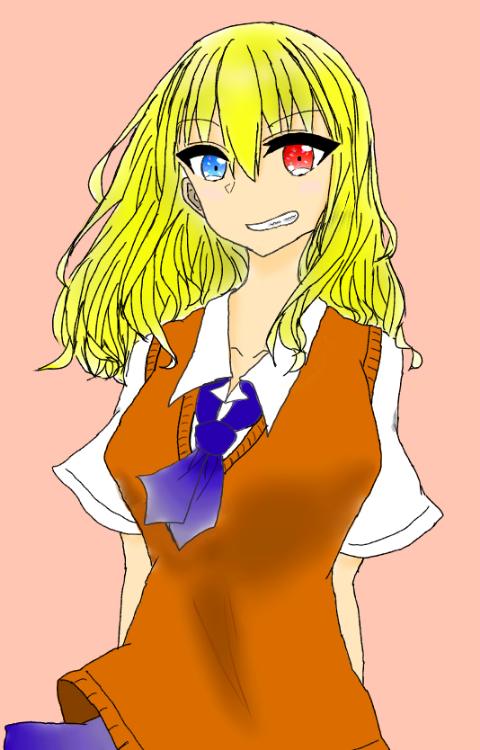 髪の毛は生まれつき金色で肩よりちょっと下くらい。