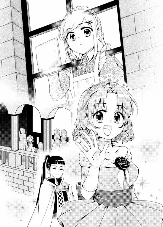 目線のやや下、向かいの棟の渡り廊下をユカリコ姫が渡っているのが見えた。王之友花里子姫――国王様の娘、第一王位継承者であり、メイド全員の仕えるべき王家の人間だ。彼女は近くを通りかかったメイドに何事か声をかけ、緊張しつつ答えるメイドに笑顔でひらひら手を振っている。ほんのり垂れ目のつぶらな瞳がくるくると元気よく動く、楽しく幸せそうな国のお姫様の笑顔。見ているとこっちまで安心し、うれしい気持ちになる。