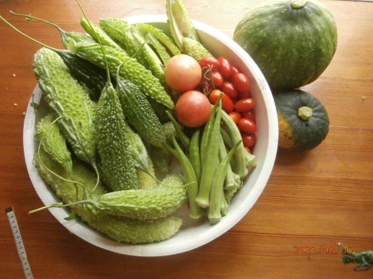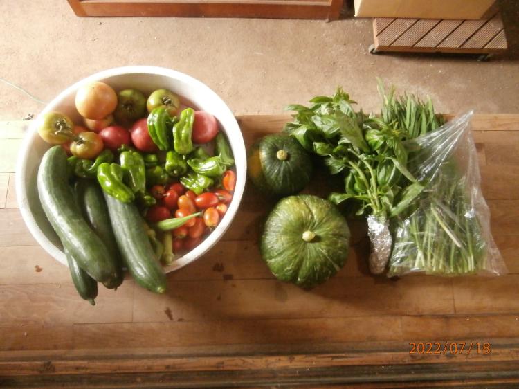 来た当初は、荒地だった畑も、今は野菜畑に変身して、毎日夏野菜ができる。