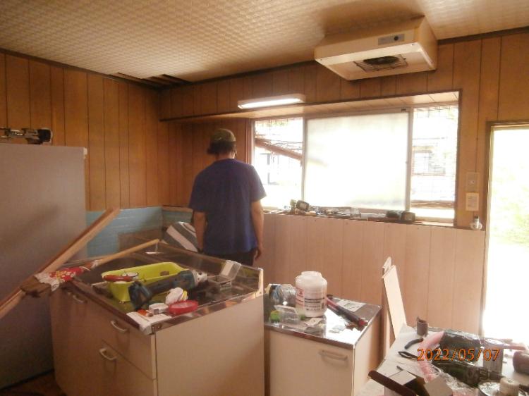 流し台は、さすがにさびて汚かったので、たまたま水道の仕事をしていた3男がとりかえてくれた。
