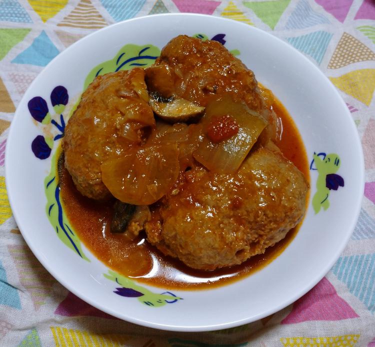 ハンバーグ焼かないで煮込むとこんなかんじなんだ……