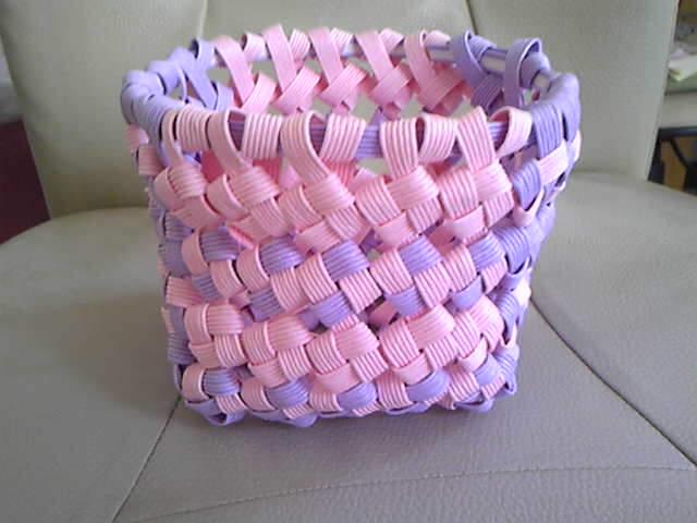 苦労していた、四つ畳み編みのかご、やっとできました。