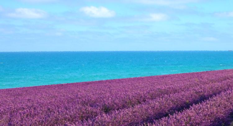 やがて美しく咲き乱れるラヴェンダーの畝に入り、突き抜けた向こうに求めていた色を捉えた。タラはラヴェンダー色とシアン色の狭間に立ち、南に目を向けて両方の色を視界に映した。