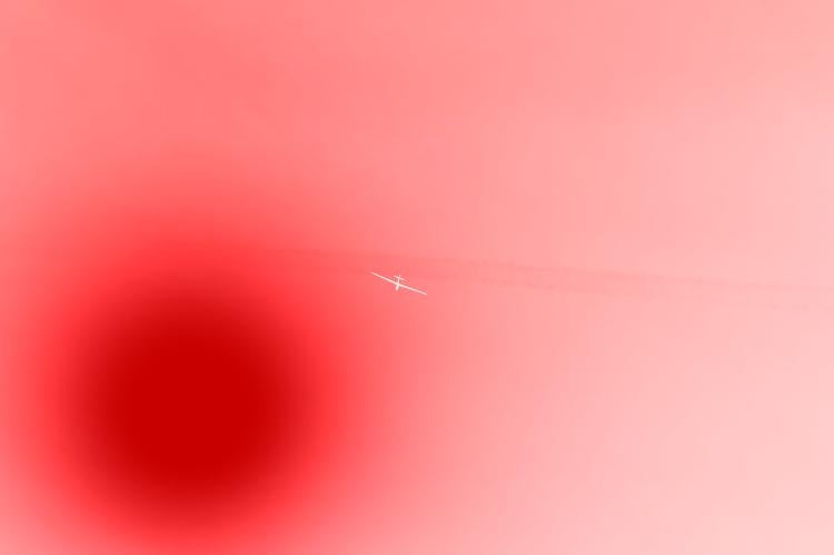 光は遥か遠くても飛行船を着実に捉えていた。昼間の流星のように真っ直ぐ貫かれる赤いライン。けれどそれは邪魔する何かに阻まれた!