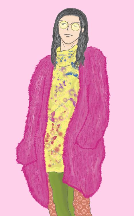 このイラストのニットカーディガンは10万以上、中に着ているカットソーは5,6万ぐらい。