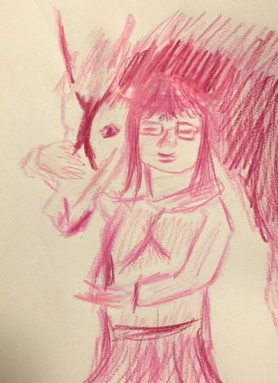 人間も伏し目がちになった、馬が少し笑ったように見えた