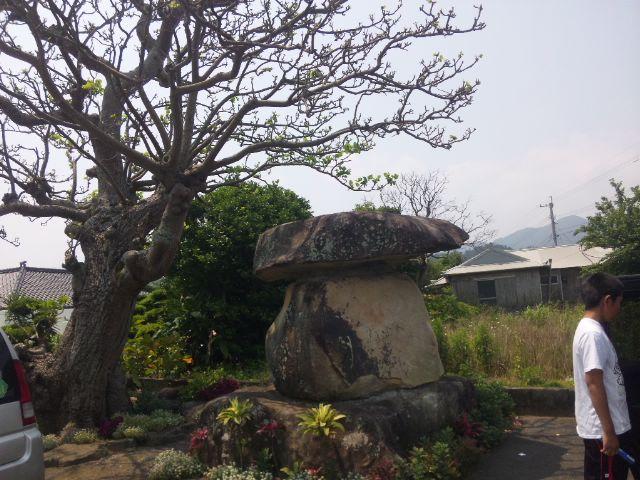 駐車場にある大きな木と石