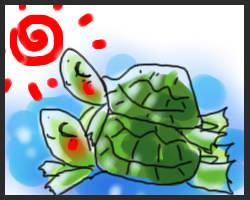 日光の下で甲羅干しが、何よりも幸せな亀ちゃんズ。