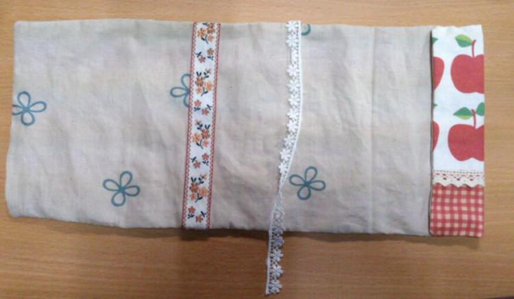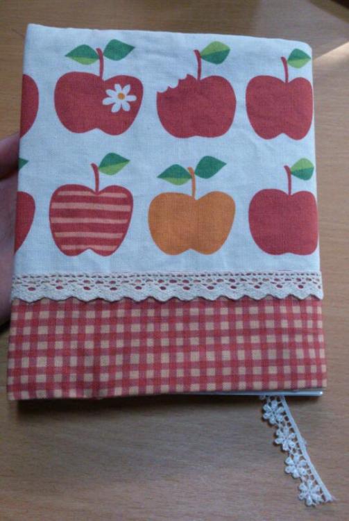 リンゴとチェックの間にあるレースは、自分でつけたものです。