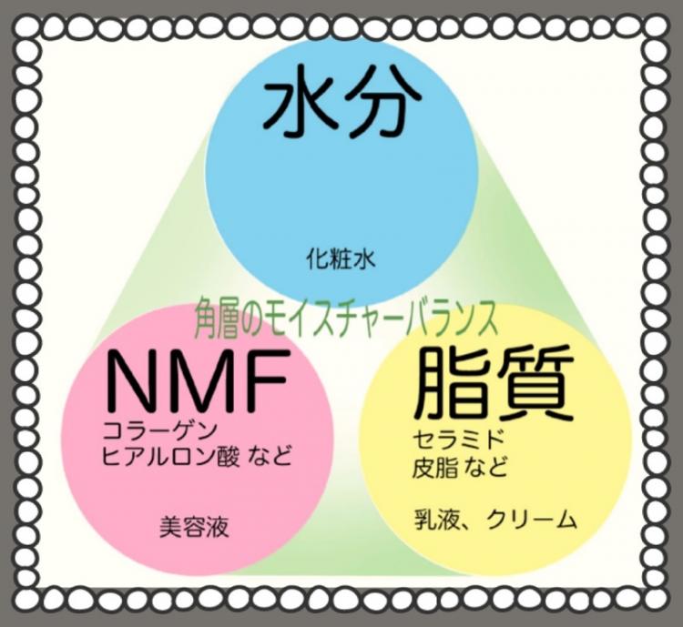 角質層のモイスチャーバランスは水分、NMF、脂質でたもたれます。