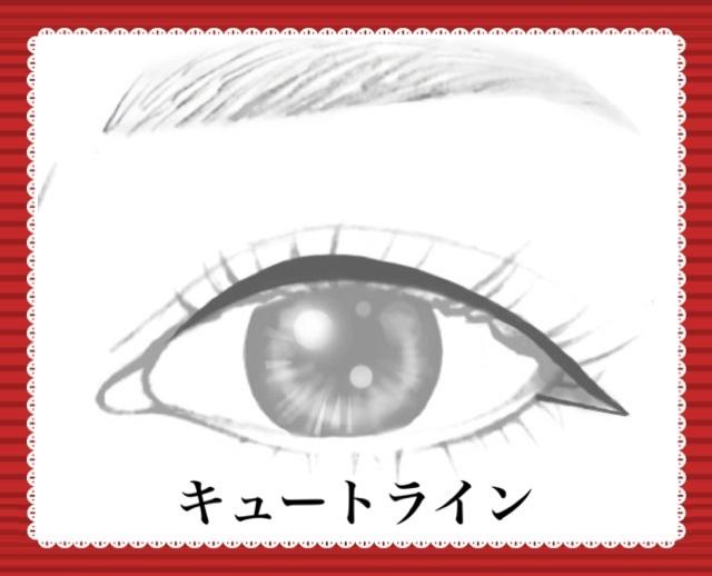 目尻の切れ目方向が下向きになり、可愛らしい印象のラインになります。