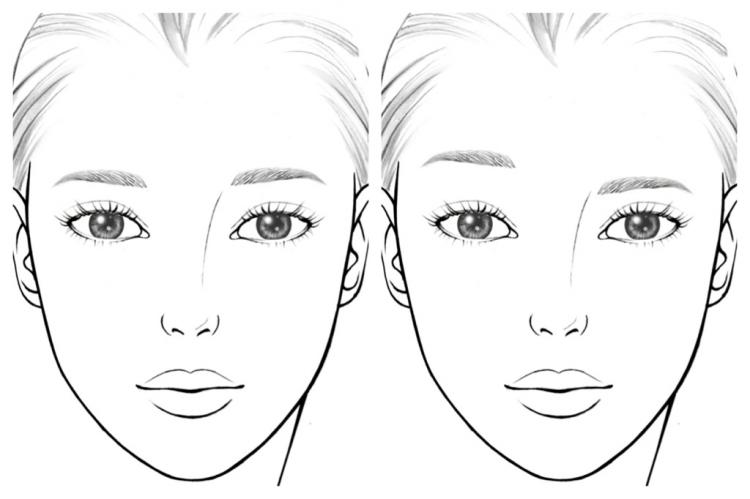 顔の形や眉の好みは別として、眉のあるべき位置がしるされています。